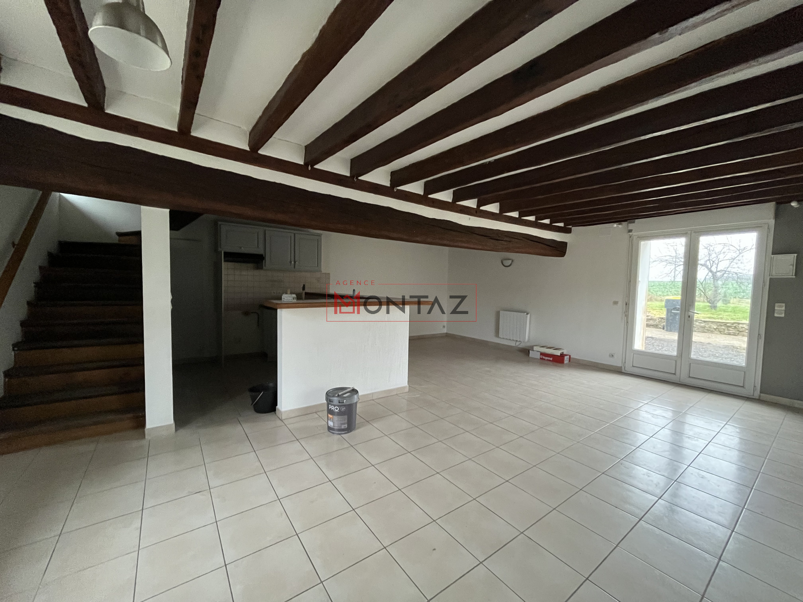 RDC : vaste séjour avec cuisine ouverte