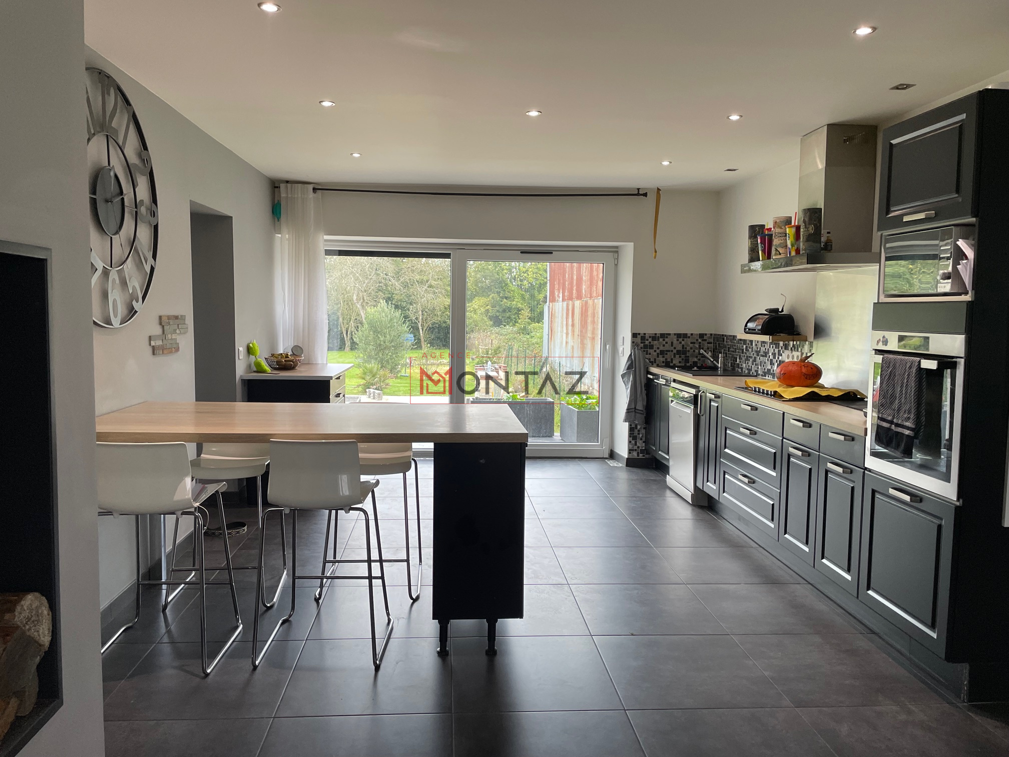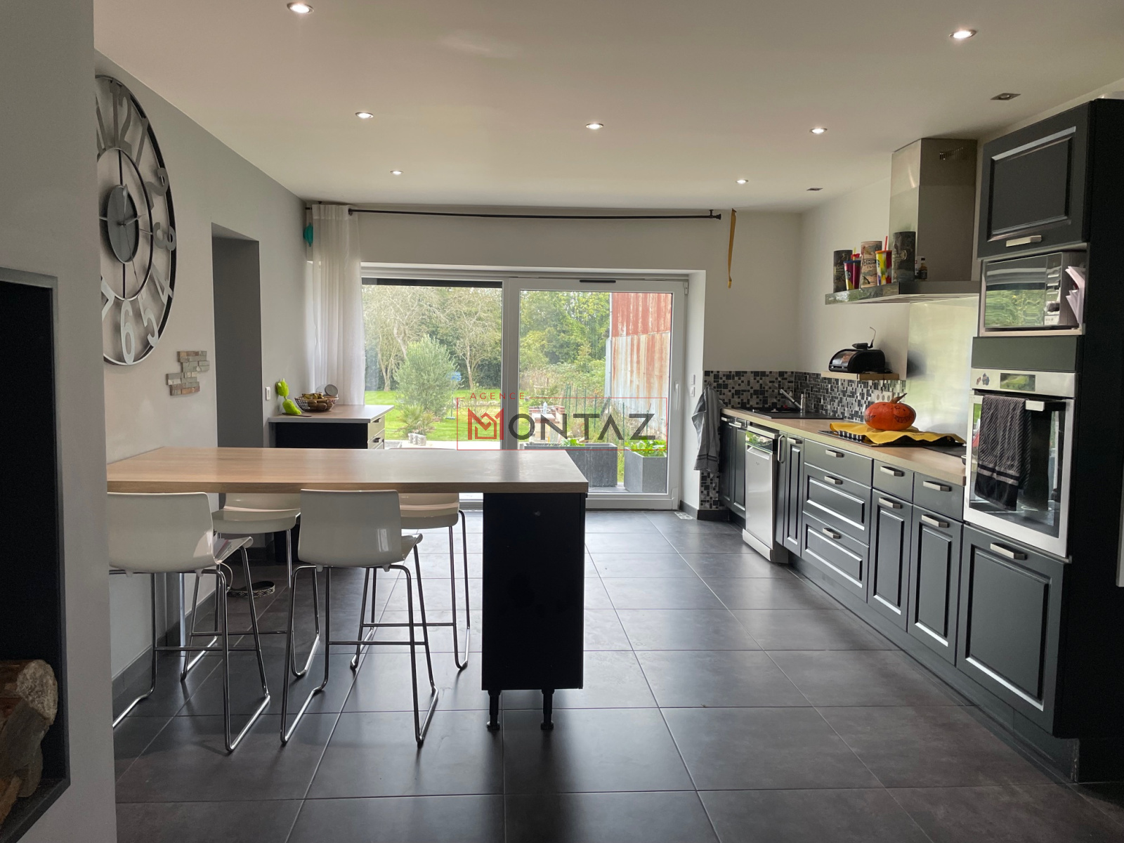 Elle se compose d’un vaste espace de vie avec cheminée et cuisine ouverte, de cinq chambres spacieuses, de deux salles d’eau, d’un dressing, d’une buanderie et d’une grande pièce polyvalente actuellement utilisée comme salle de sport.