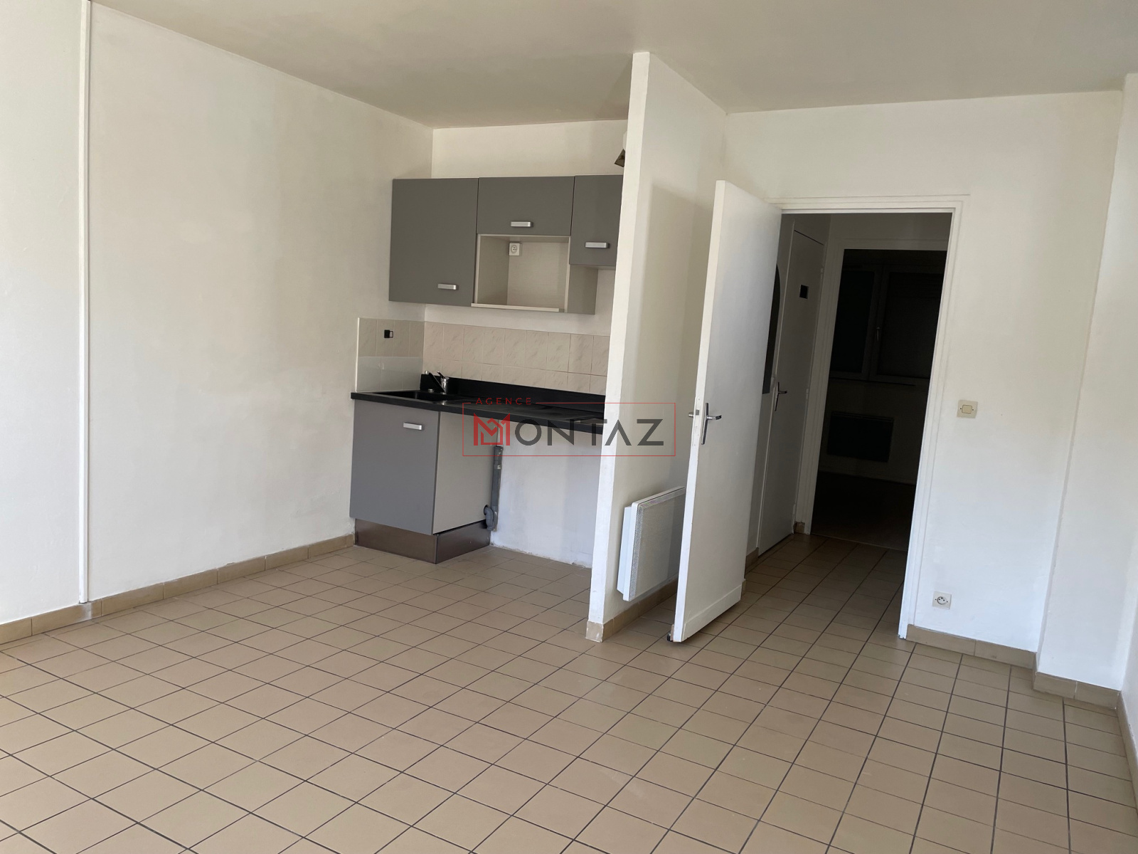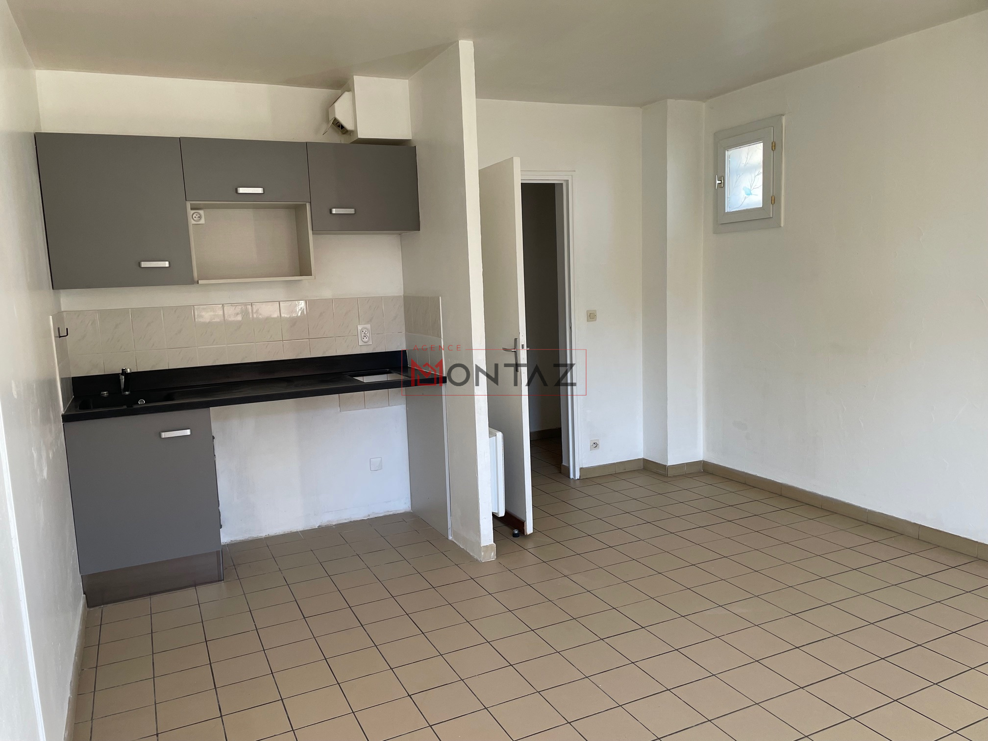 APPARTEMENT DE TYPE F2, EN REZ DE CHAUSSEE : entrée, séjour et cuisine ouverte aménagée, une chambre, SALLE DE BAINS ET WC