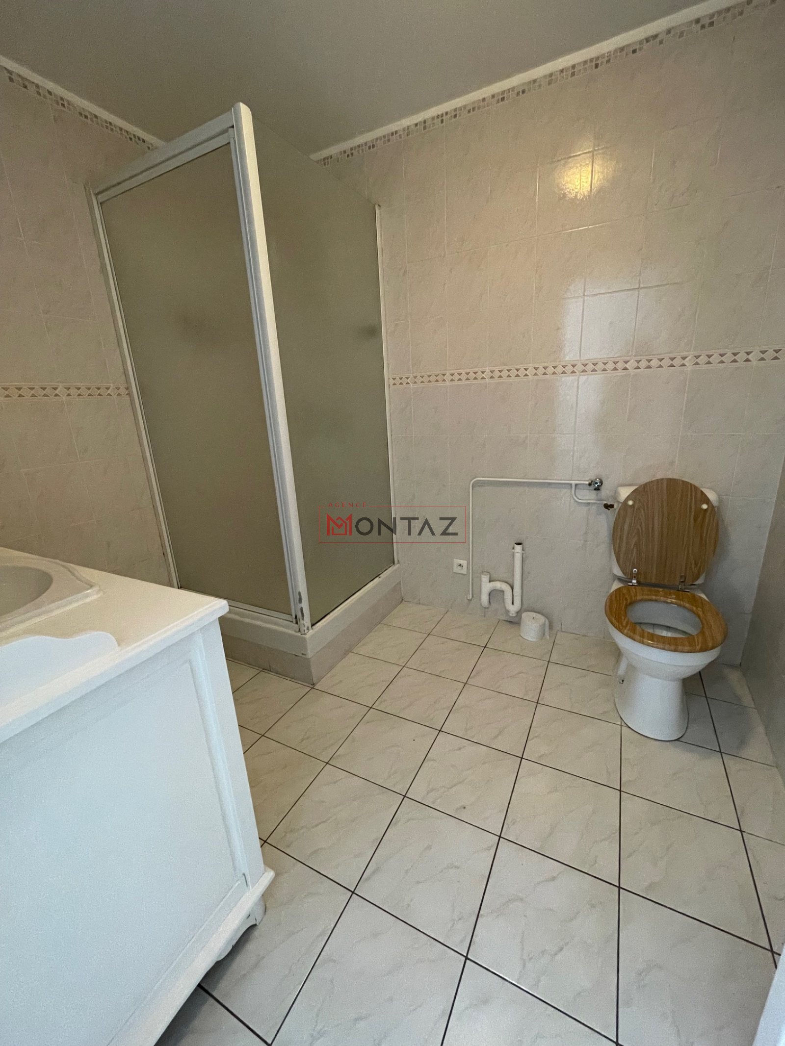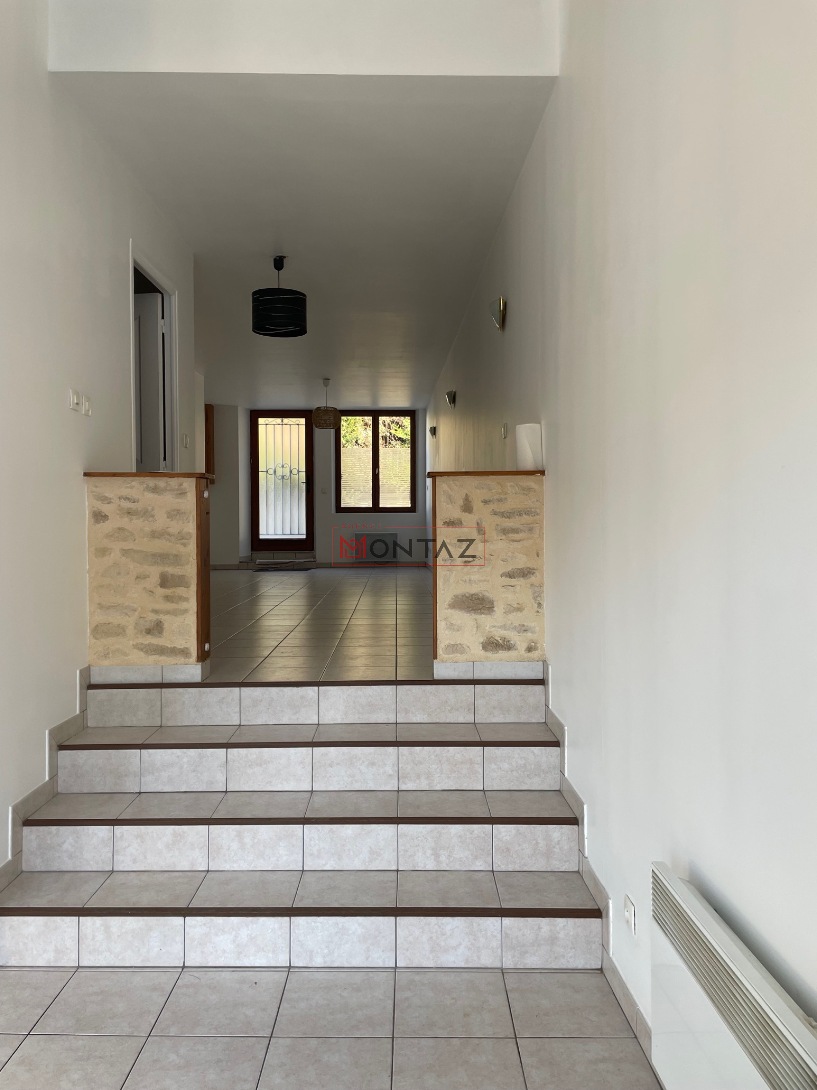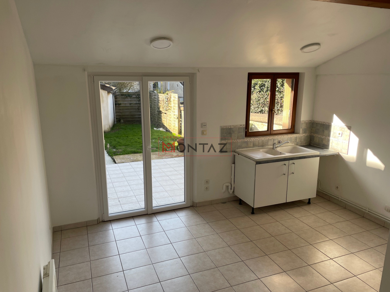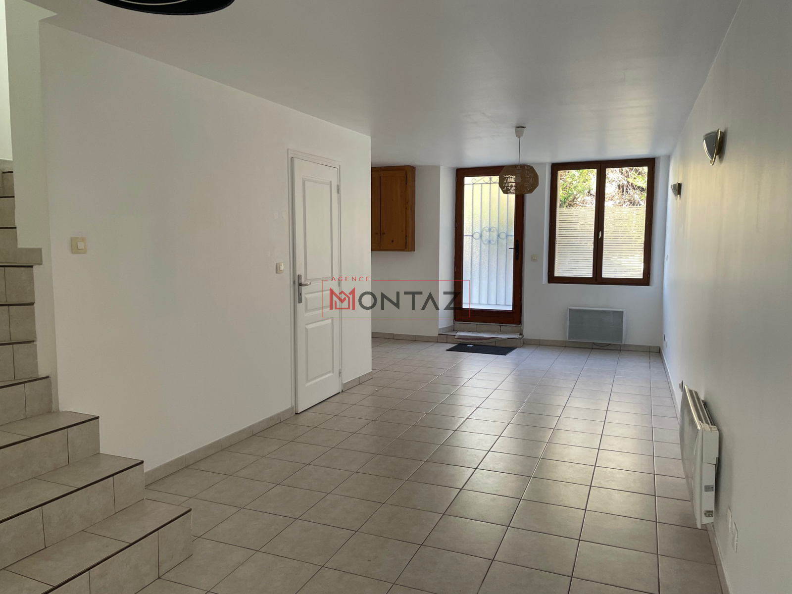 RDC : entrée, séjour, cuisine ouverte, salle d'eau et WC, cellier