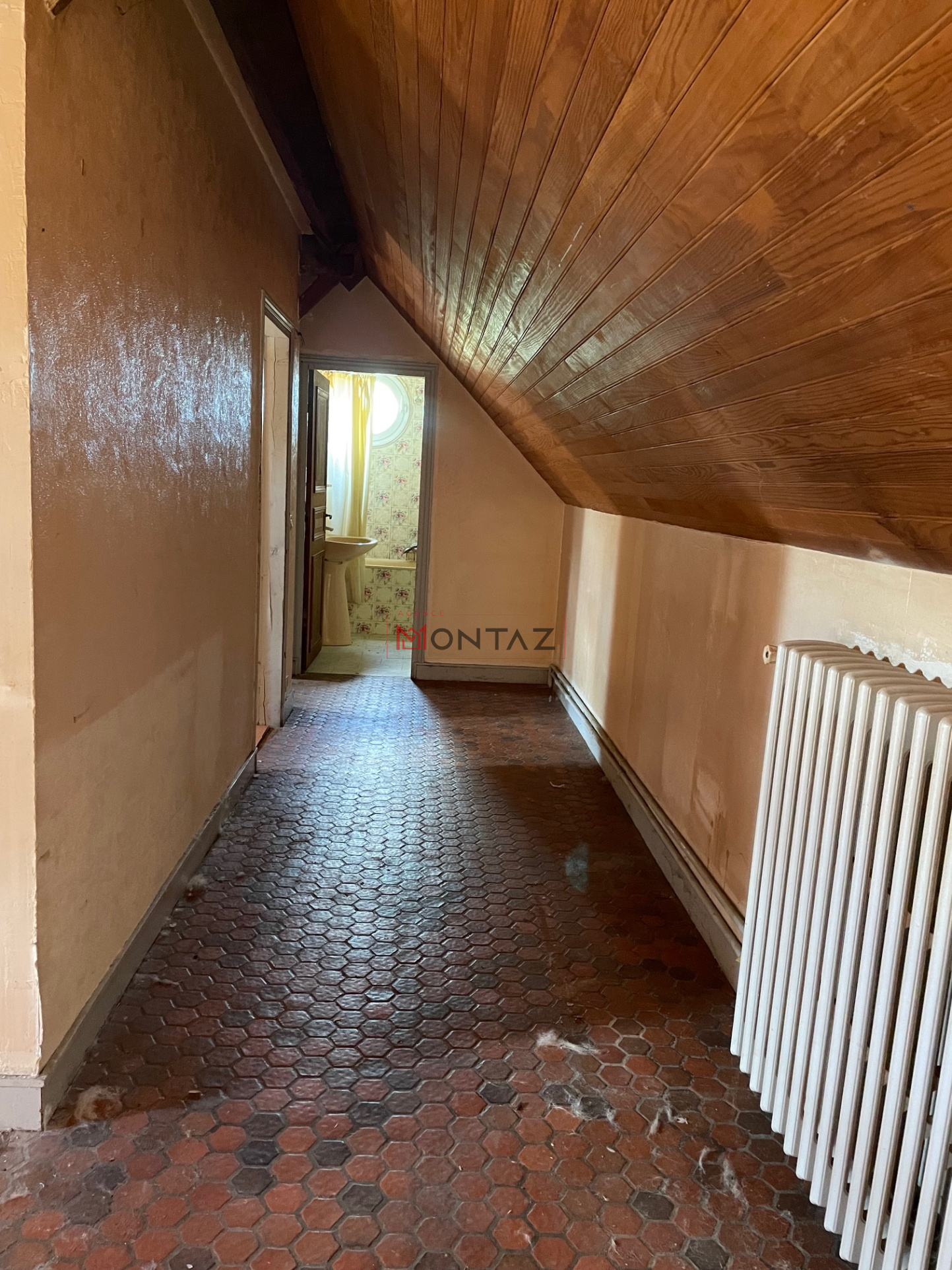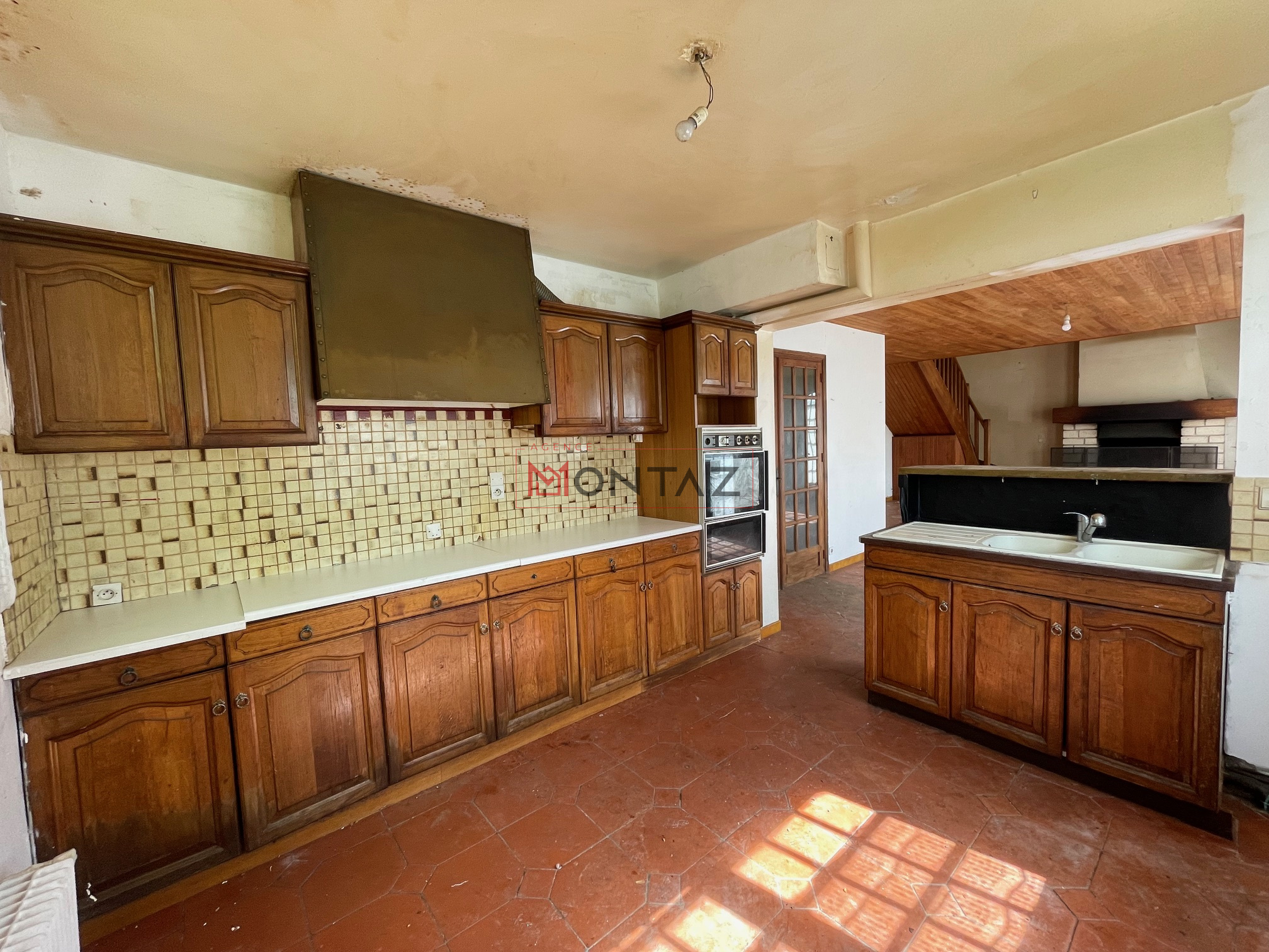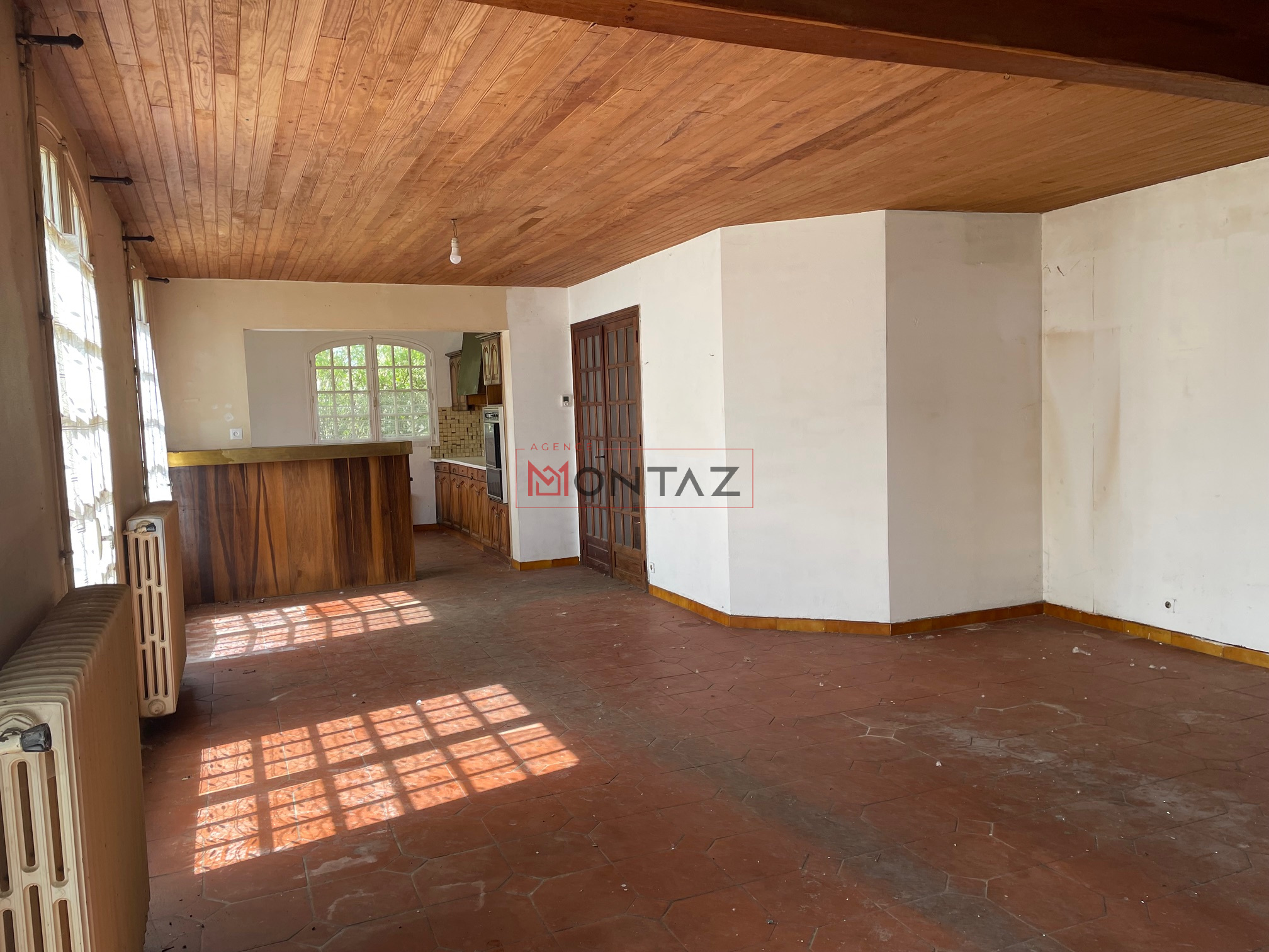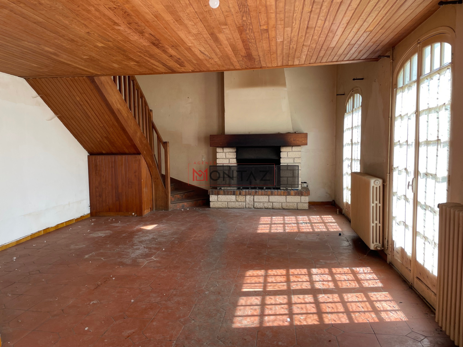 PAVILLON A RAJEUNIR sur 363m2 de terrain, RDC : entrée, séjour/salon avec cheminée et cuisine ouverte aménagée, wc, chaufferie,