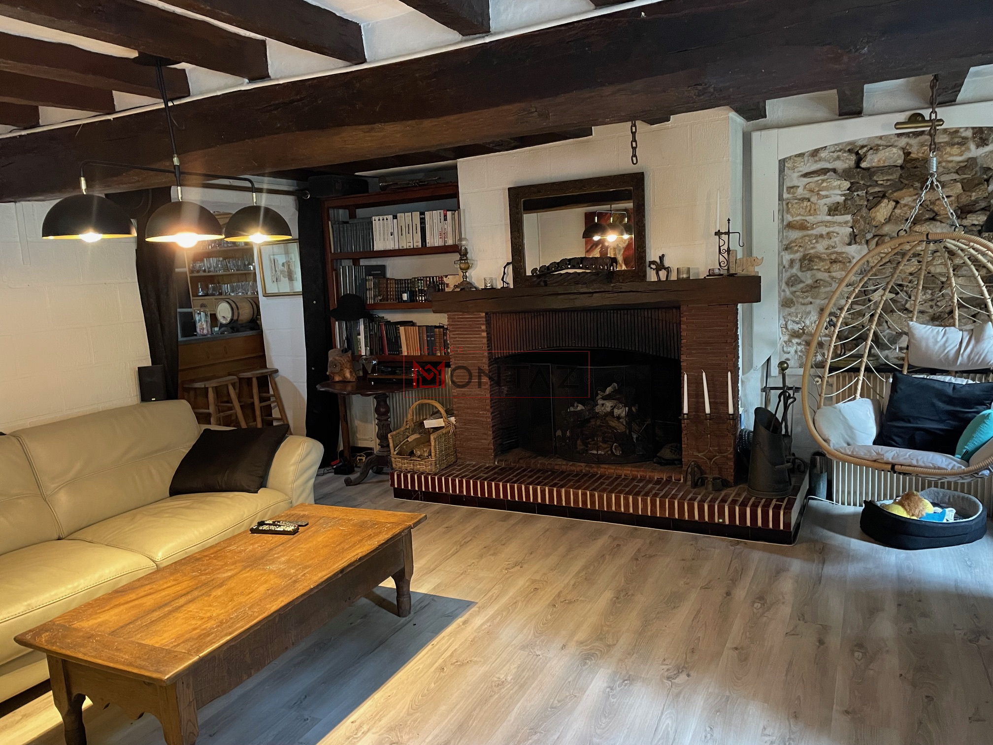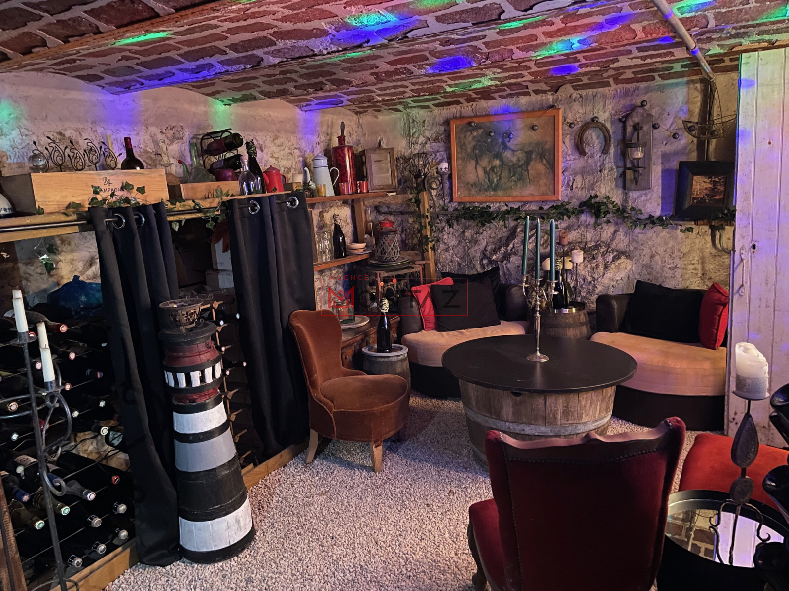AUTHENTIQUE BRIARDE DE CHARME se composant : RDC : séjour, cuisine aménagée, salon, WC, un bar, un bureau voutée, salle de bains et wc, une cave aménagée en discothèque privée