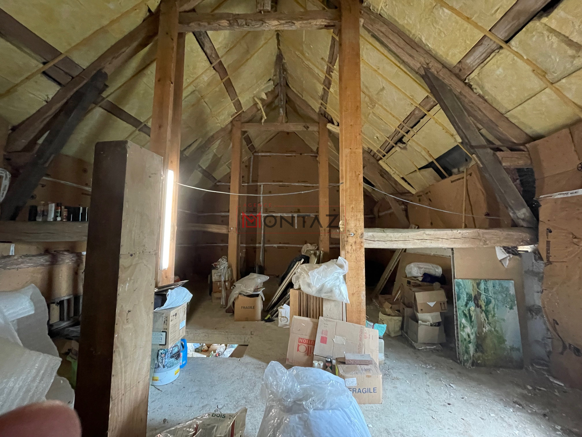 À l’étage, deux chambres ainsi qu’une salle d’eau sont déjà aménagées, et un grand grenier reste exploitable selon vos besoins.